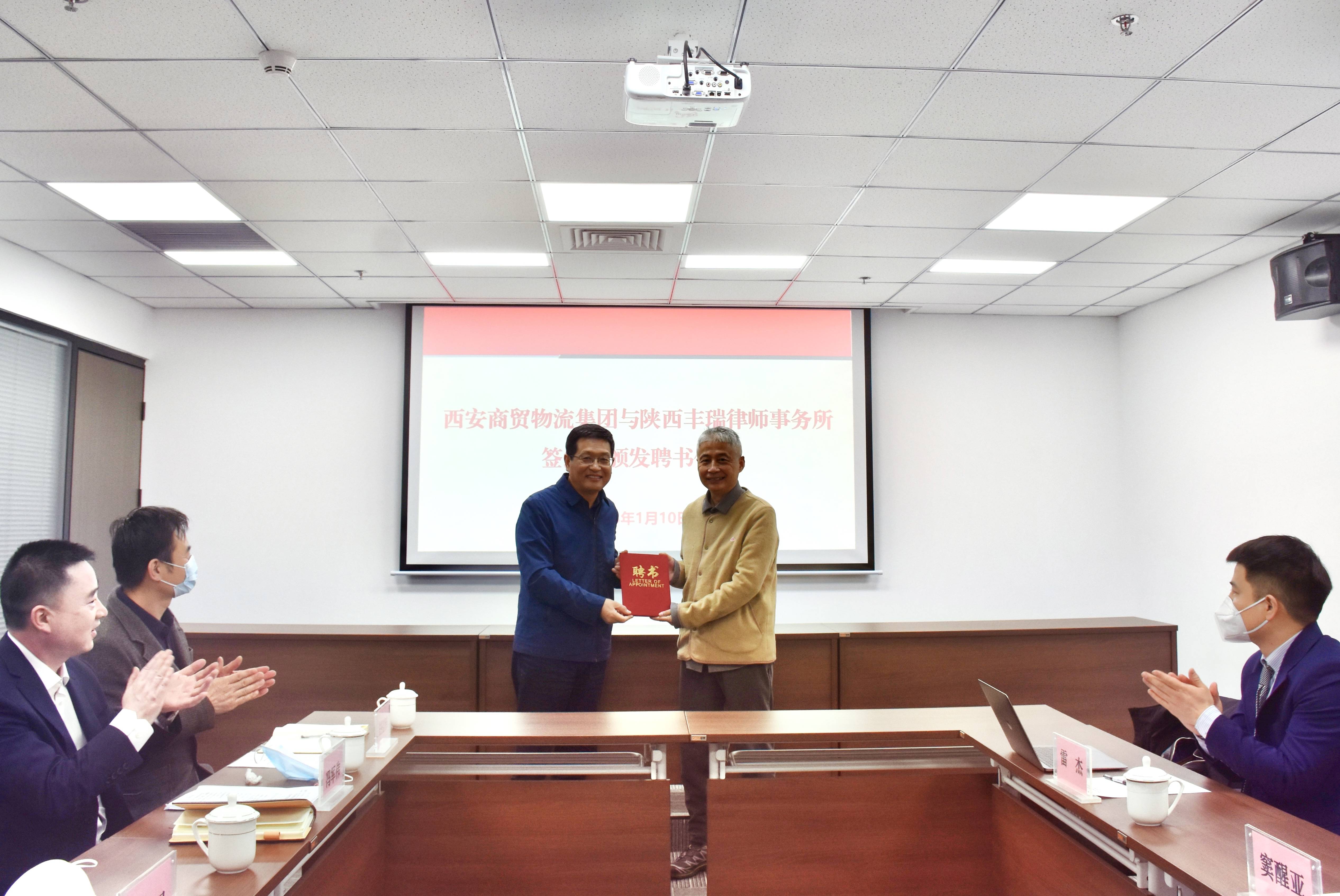 1月10日,西安商貿(mào)物流集團有限公司與陜西豐瑞律師事務所,在集團總部舉行了合作座談會暨首席法律顧問聘任儀式。集團黨委書記、董事長曹兆民,黨委委員、副總經(jīng)理馮軍偉,及相關部門負責同志,陜西豐瑞律師事務所主任竇醒亞和相關律師出席。